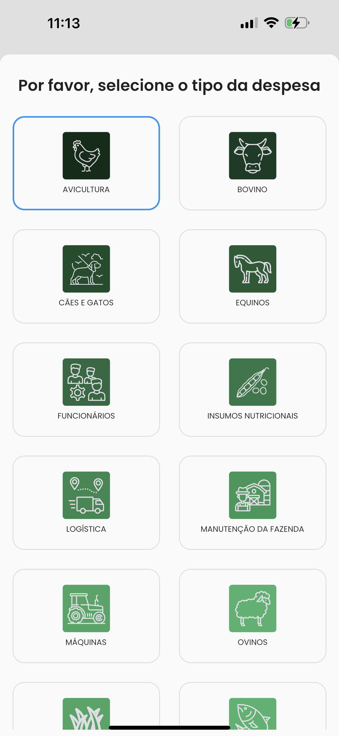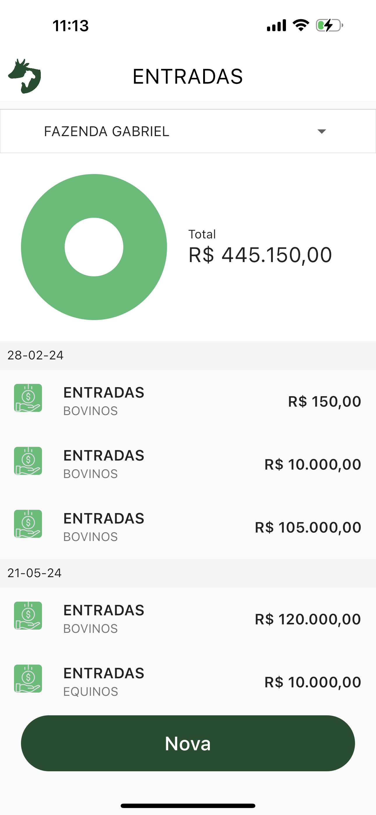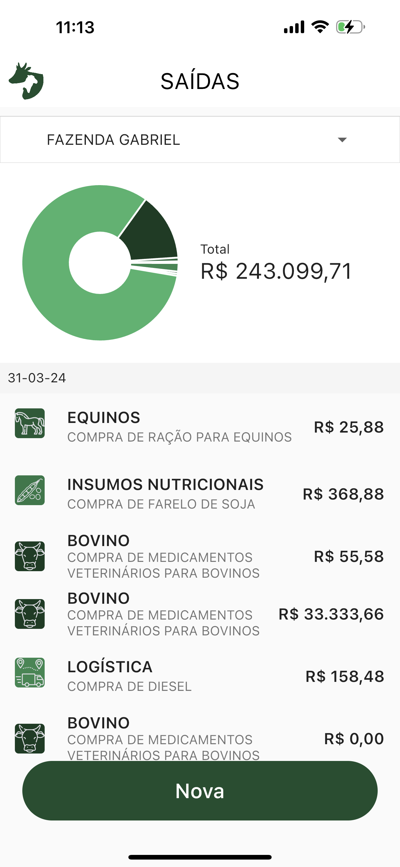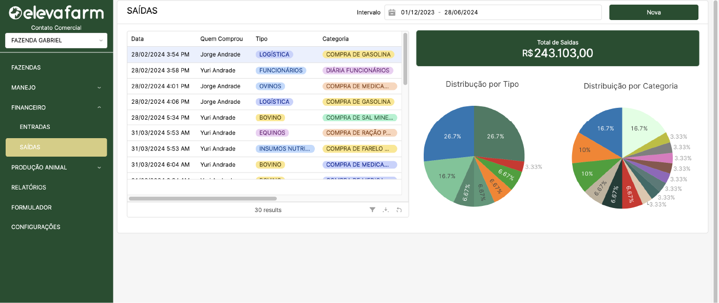 Registro e categorização de todas as despesas da fazenda, permitindo uma visão clara e organizada dos custos operacionais.